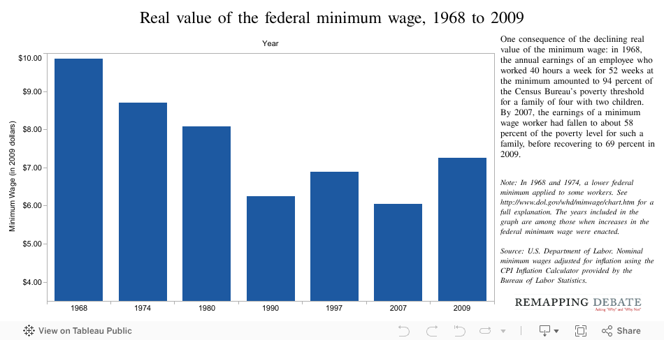 This data viz is not designed for, and should not be viewed on, mobile devices. Real value of the federal minimum wage, 1968 to 2009 Greg Marx | 1